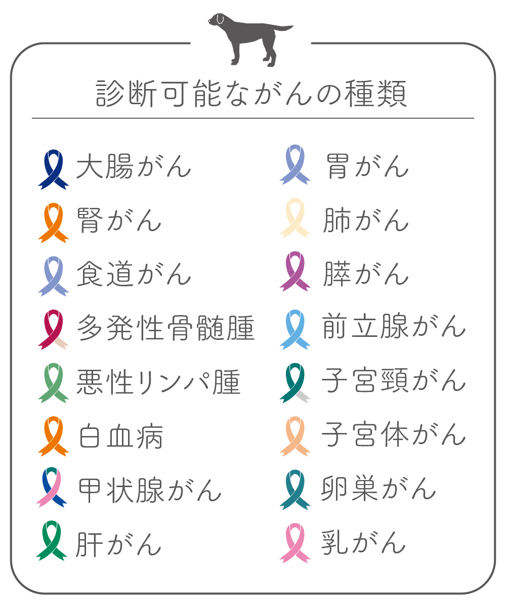 従来のがん検診と比べて、時間のかかる検査は不要とお手軽ですが、判定率は90%以上と高く、3000件以上の臨床実験によって実証されています。